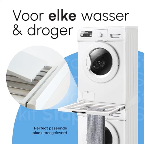 BODO® – Stapelkit voor Wasmachine en Droger – Tussenstuk met Handdoekhouder – Inclusief Anti-Trilrubbers