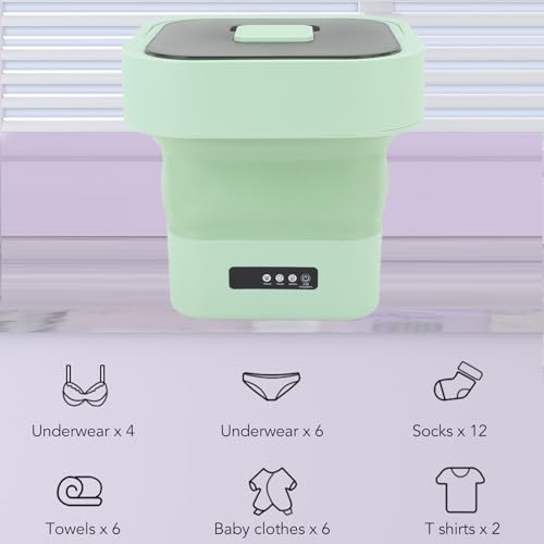 Opvouwbaar en draagbaar ontwerp: ontworpen met een opvouwbare en draagbare functie, kan deze wasmachine gemakkelijk in een kleiner formaat worden opgevouwen voor gemakkelijk transport en opslag. Ideaal voor camperreizen, kamperen of beperkte ruimtes zoals slaapzalen.