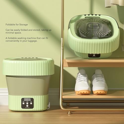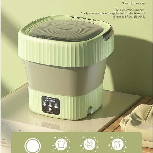 Specification: Draagbare Wasmachine, 10L Opvouwbare Wasmachine voor Ondergoed, Sokken, Babykleding, Mini-wasmachine met Afvoergat voor Appartement Slaapzaal Hotelreizen (GREEN)