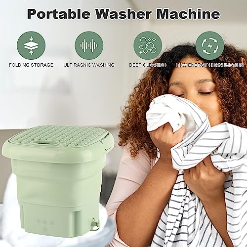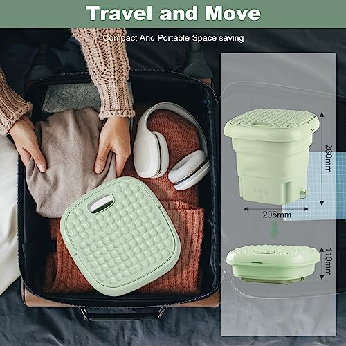 Draagbare Wasmachine Met Afvoermand,Mini Draagbare Emmer Wasmachine, Opvouwbare Kleine Wasmachine Voor Ondergoed, Sokken, Babykleding, Handdoeken, Perfect Voor Kamperen, Reizen, Appartement(Groente)