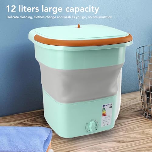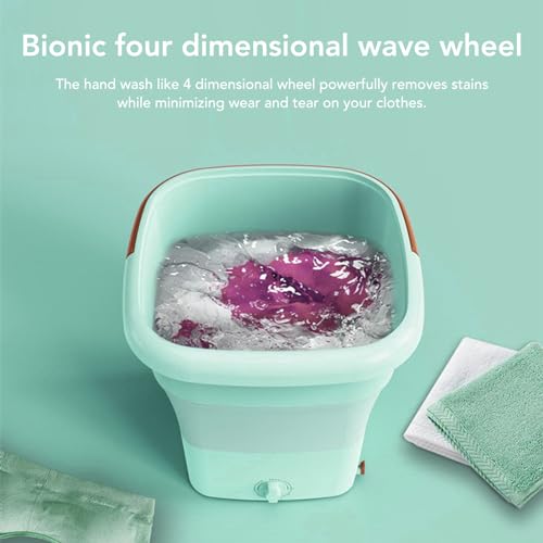Specification: Draagbare wasmachine, mini-wasmachine 12 l met droogmand, kleine opvouwbare wasmachine, 135 W, voor sokken, ondergoed, zakenreizen (GREEN)