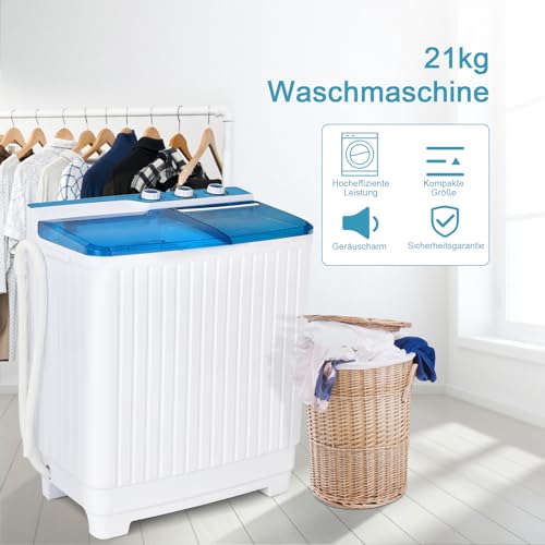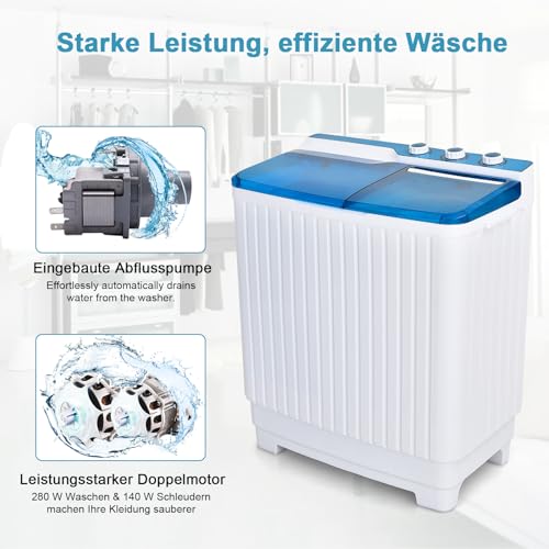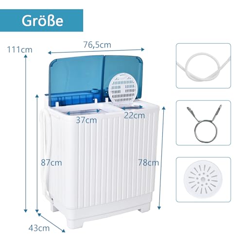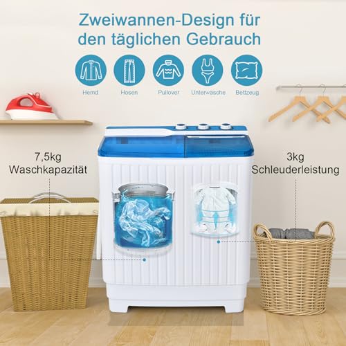 Specification: GOPLUS Wasmachine met 2 kamers, wasmachine met 7,5 kg wascapaciteit en 3 kg centrifuge, centrifuge, toploader, voor kleine woningen (blauw)
