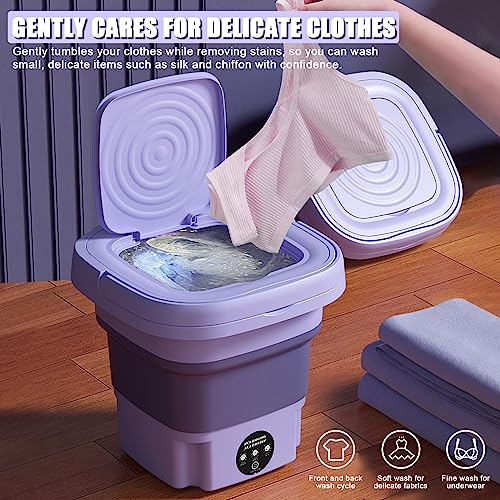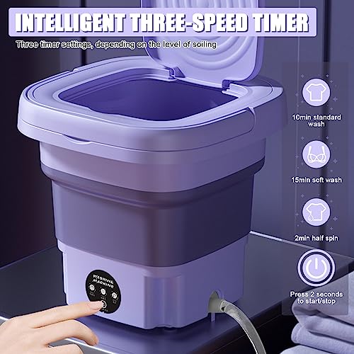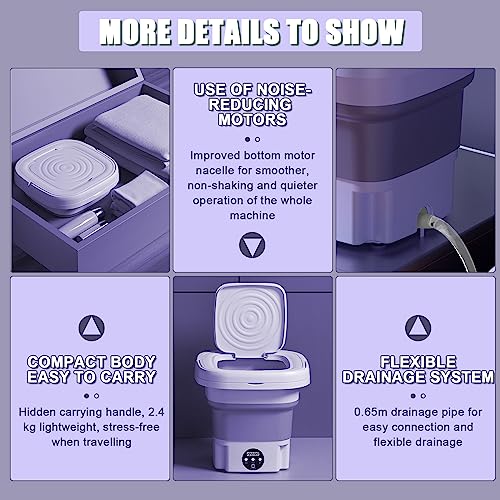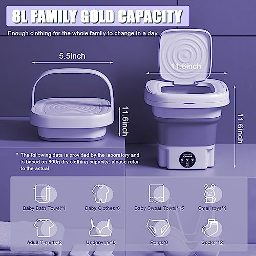 Specification: Mini-wasmachine, 8 liter, draagbare opvouwbare wasmachine met 3 modi, campingwasmachine voor ondergoed, lichte kleding, EU-stekker (paars)