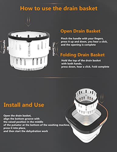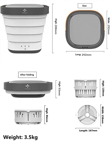 Specification: Mini Wasmachine Kleine Draagbare Opvouwbare Campingwasmachine (Opgevouwen Hoogte: 9.3cm) Elektrische Kleine Turbo Reiswasmachine Voor Eenpersoons Appartementen (Met Afvoerkorf Grijs)